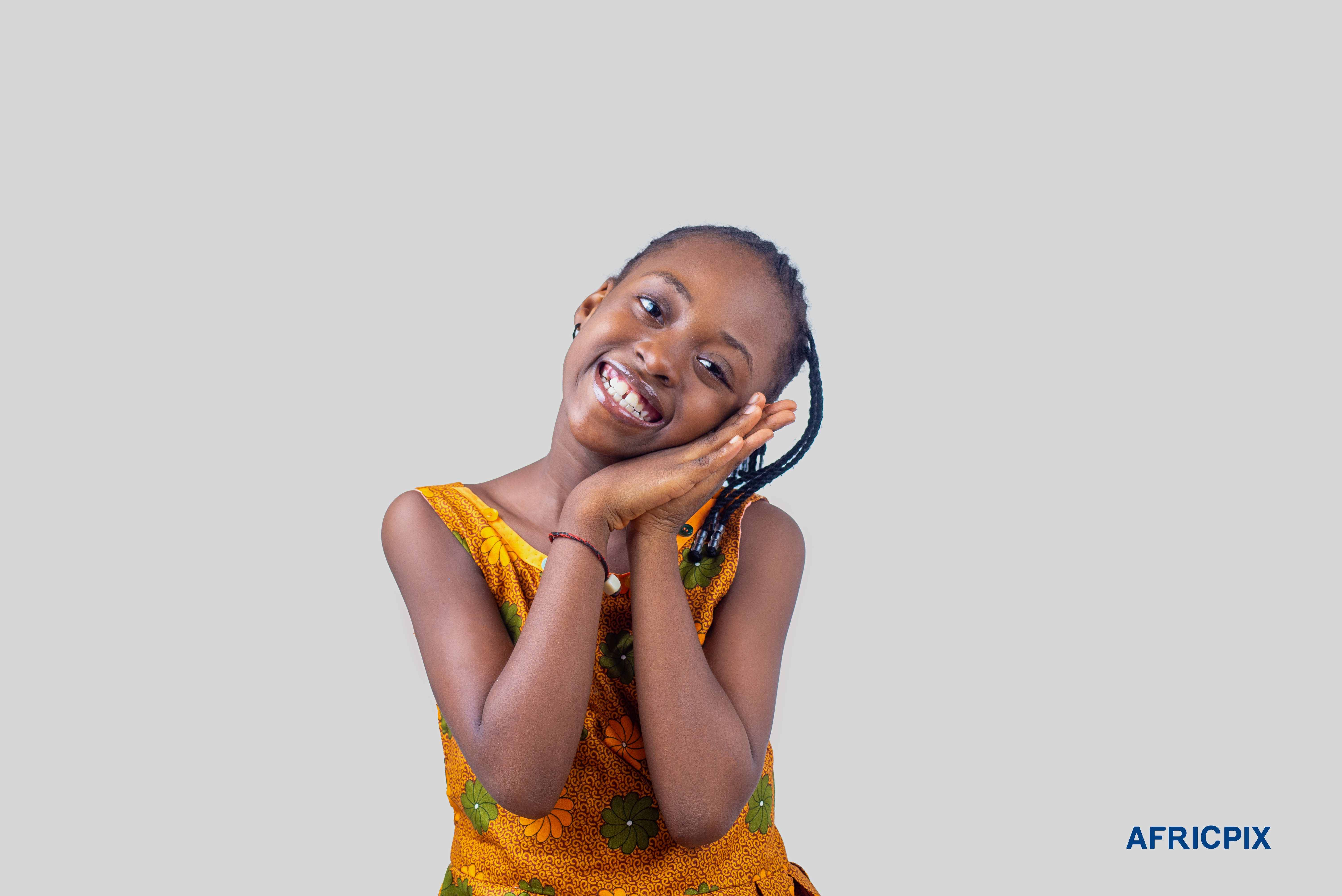 Nigeria Child Boy Wearing Native Attire Smiling Hands on face