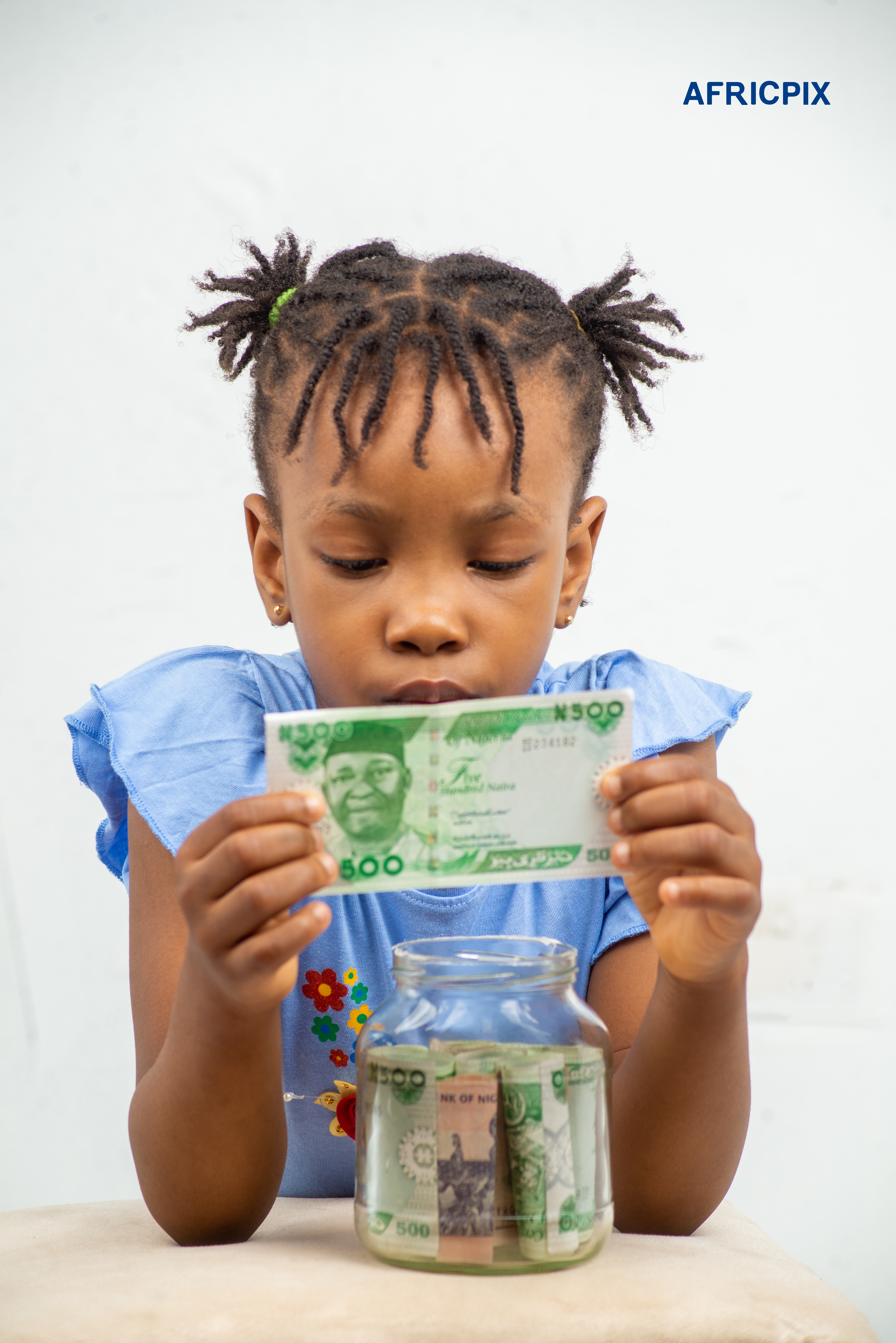 Nigeria Child Girl Holding Naira Money on Face