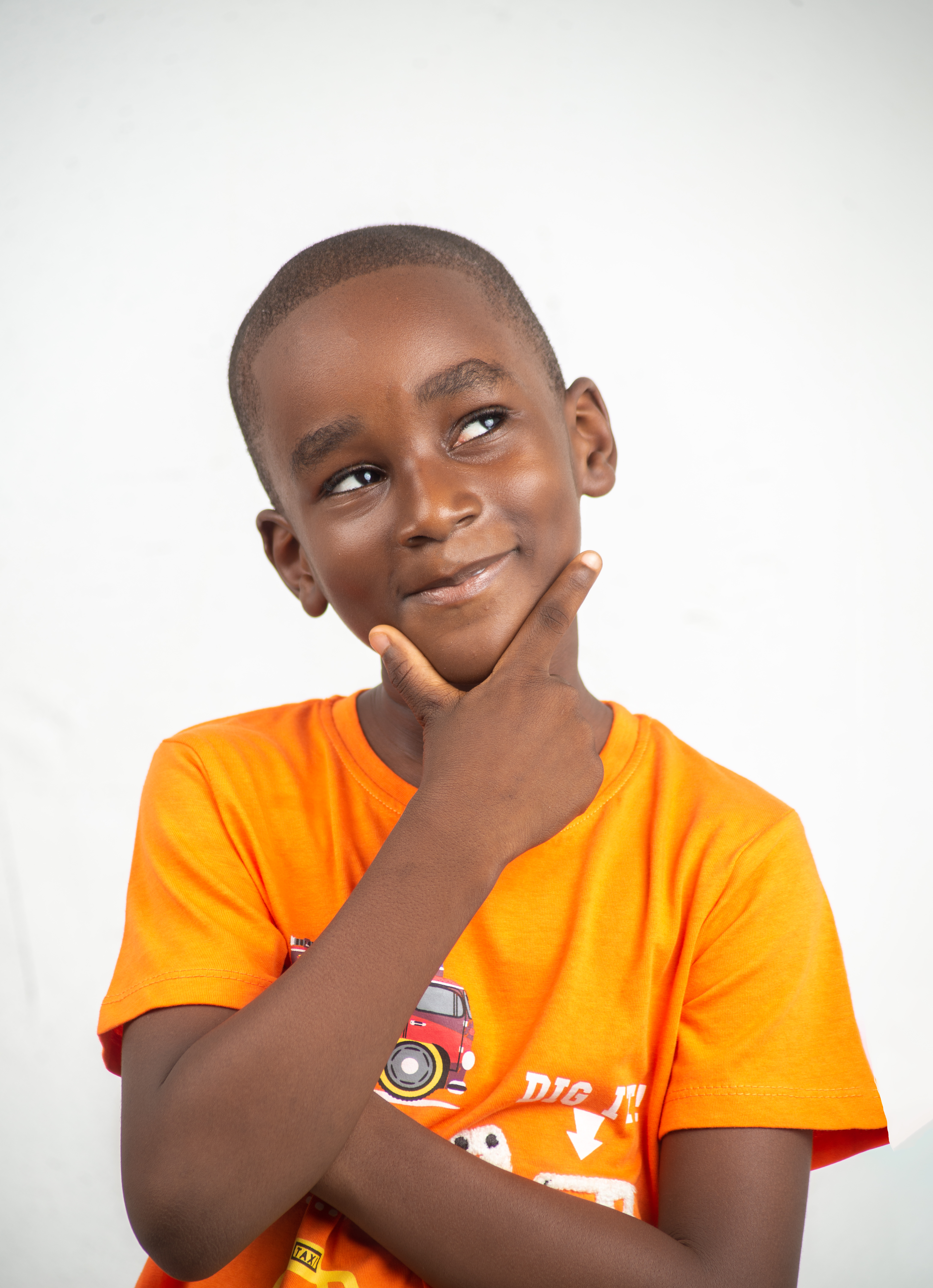 Happy Nigerian Boy Child Hands on Chicks Thinking