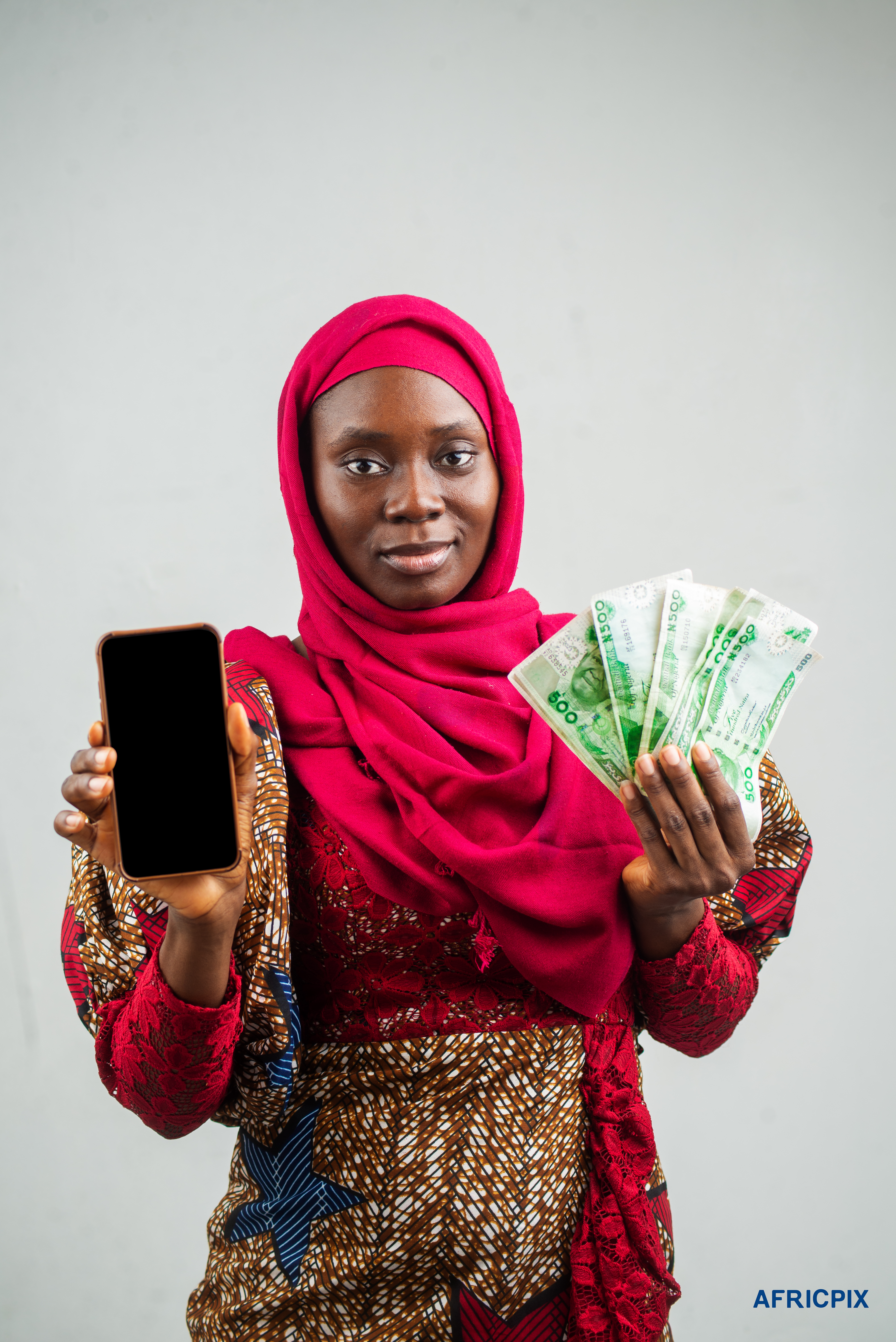 Nigeria Woman Hausa Holding Money and Phone