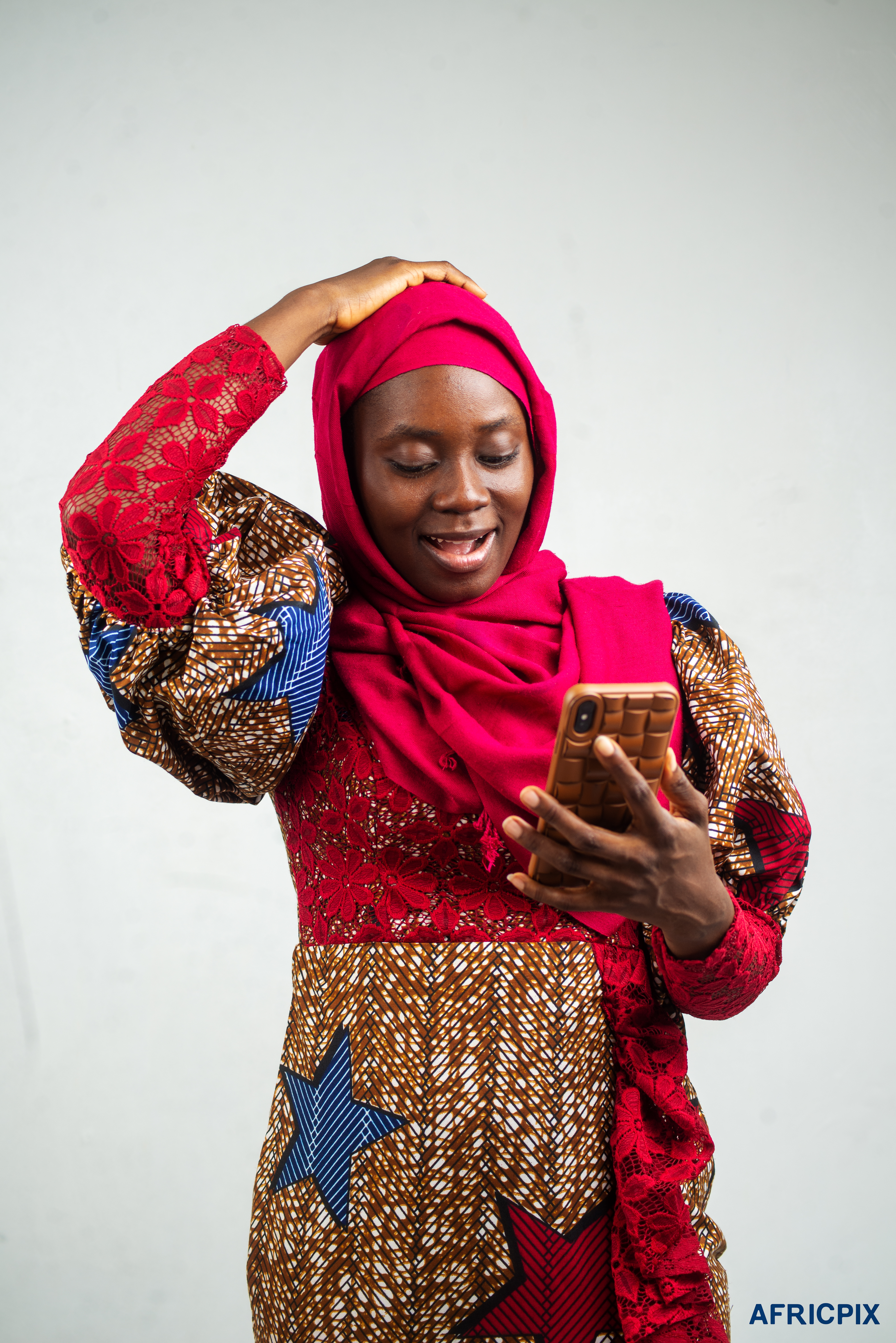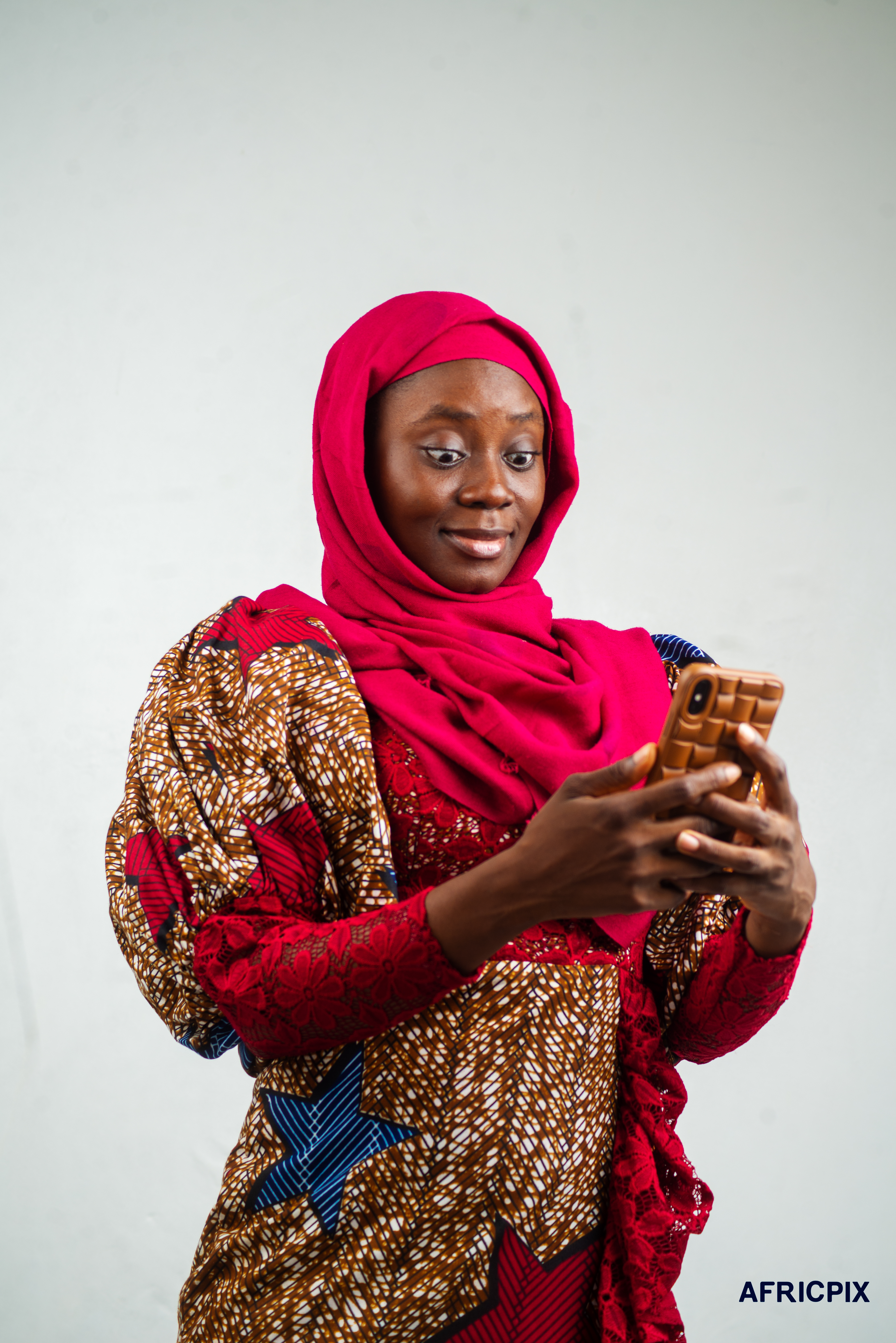 Nigeria Woman Hausa Holding Phone Looking_Surprise_Africpix