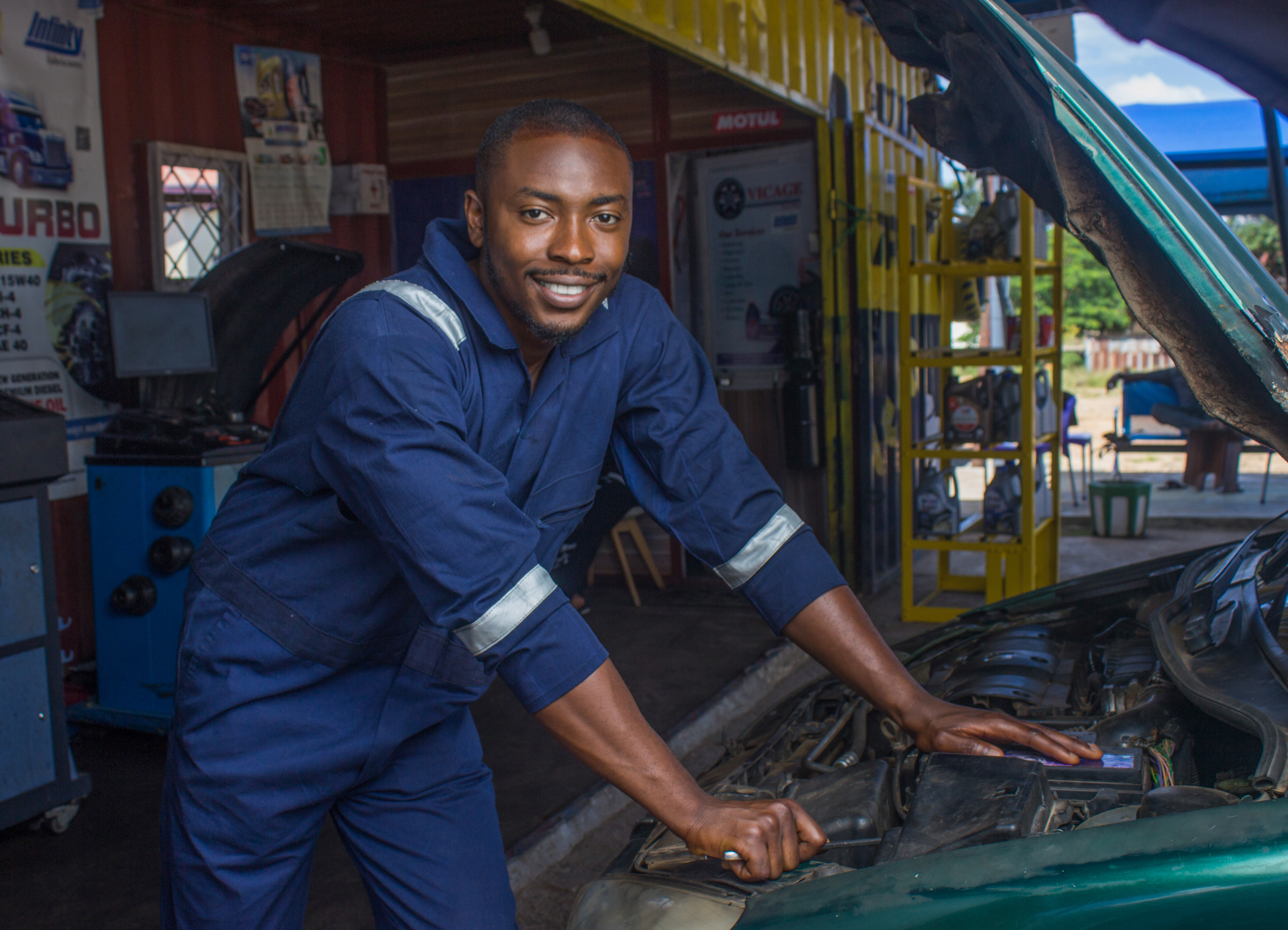 African Mechanic Smiling and Repairing a Car 2.jpg
