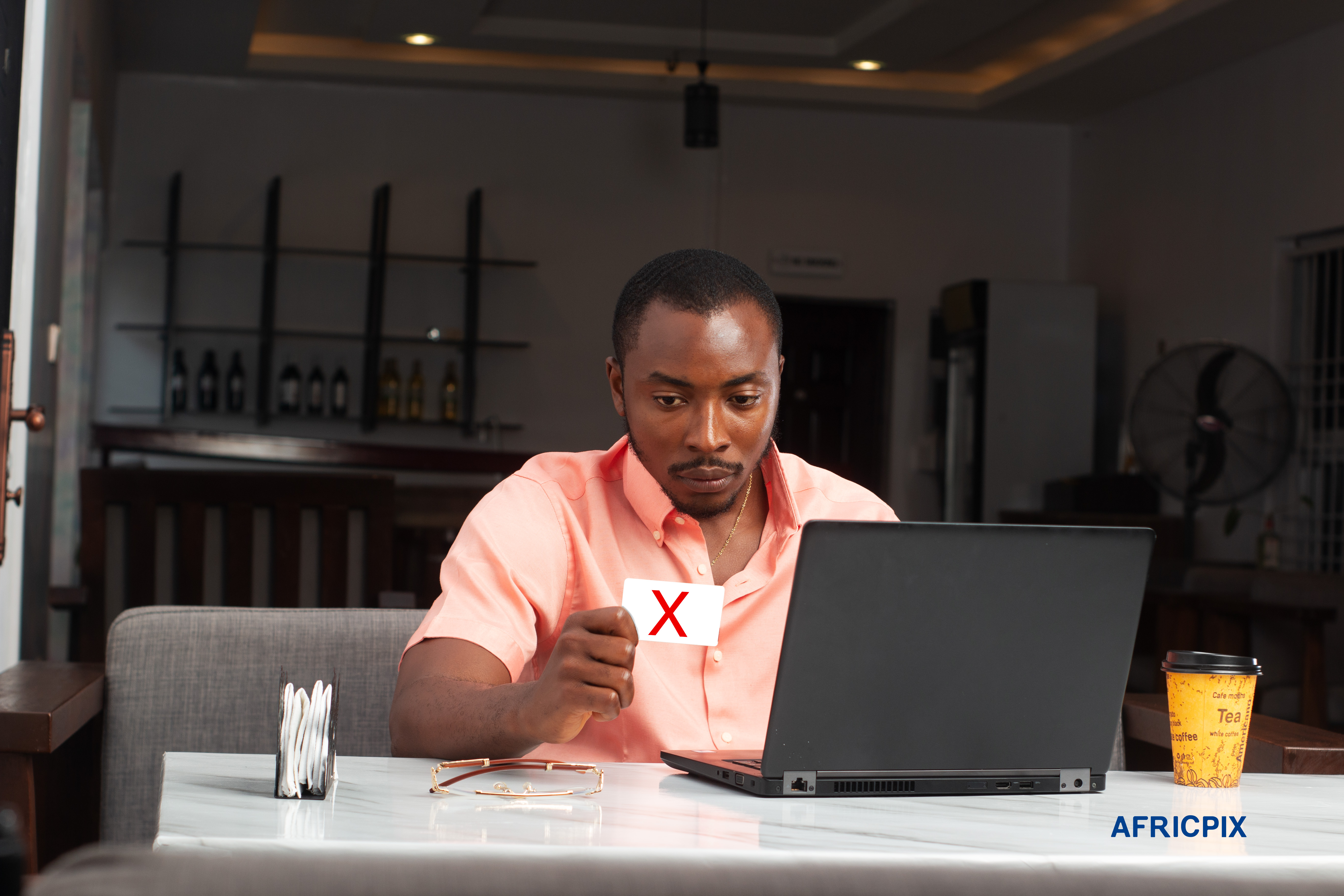African_Nigeria_man_looking_stress_laptop_in_front_of_him