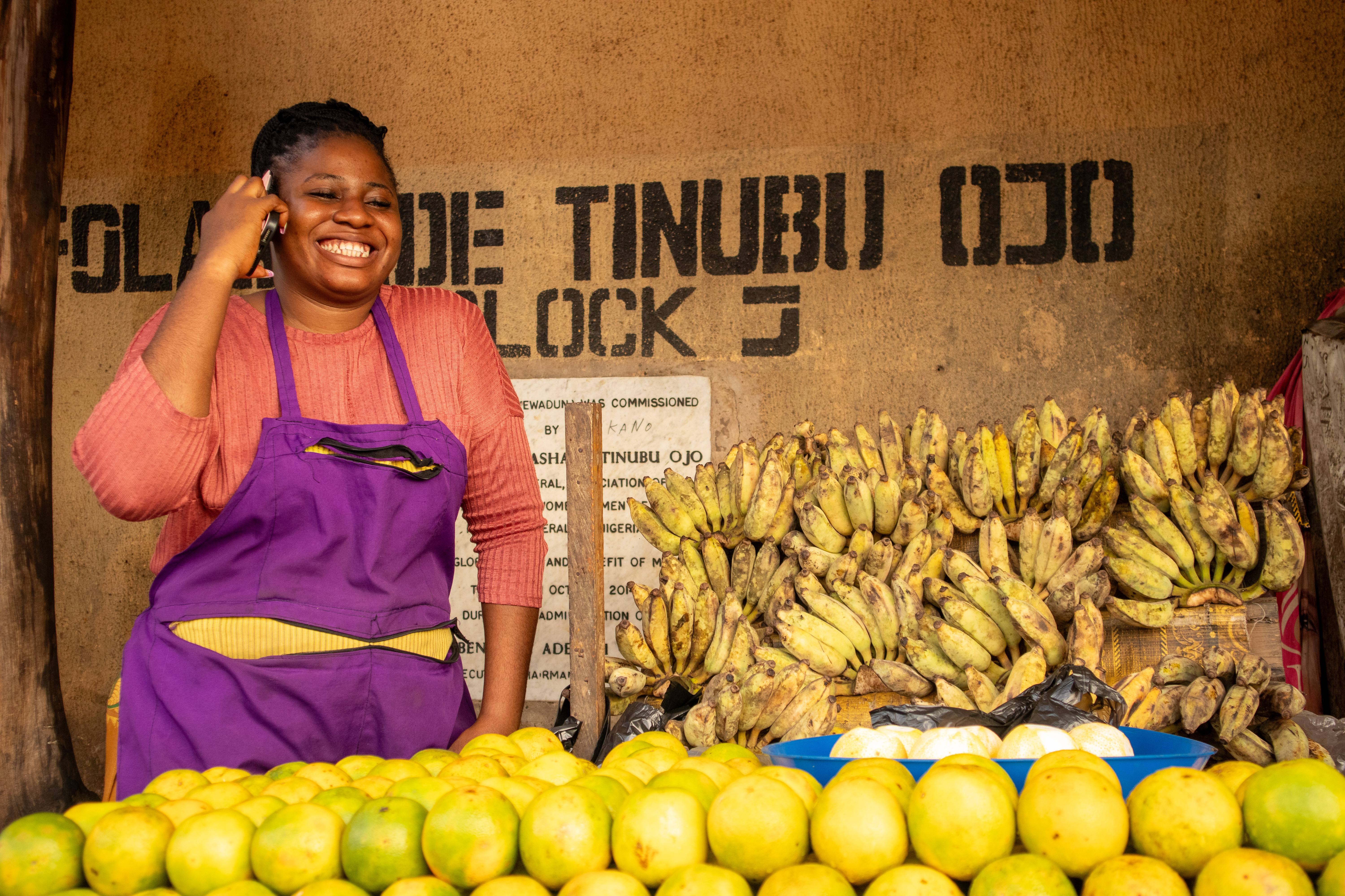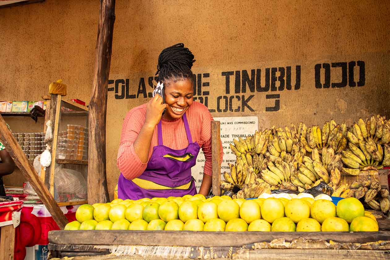 African-market-woman-answering-a-call-and-laughing