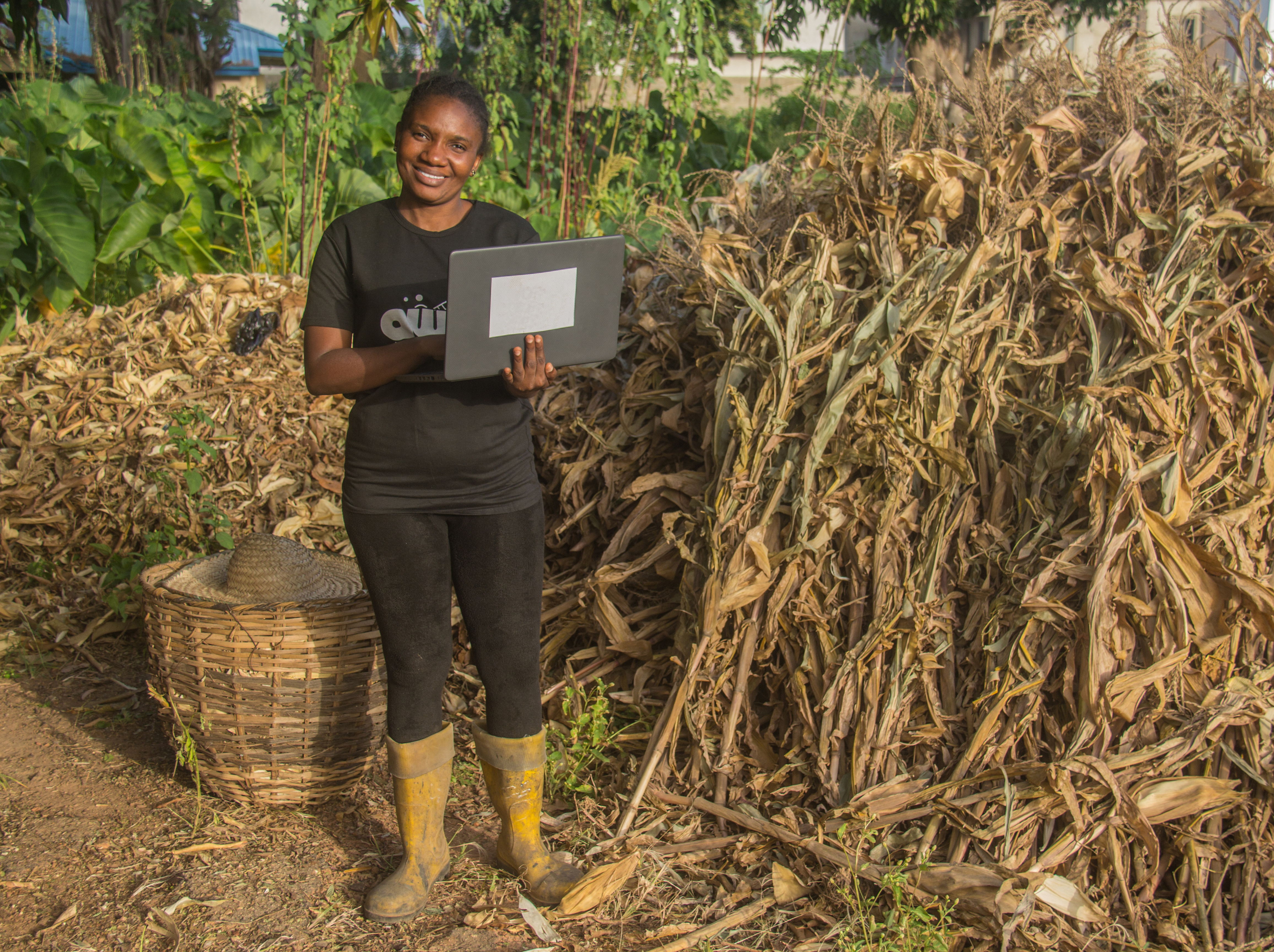 African female farmer in a farm setting, using a laptop-woman-2.