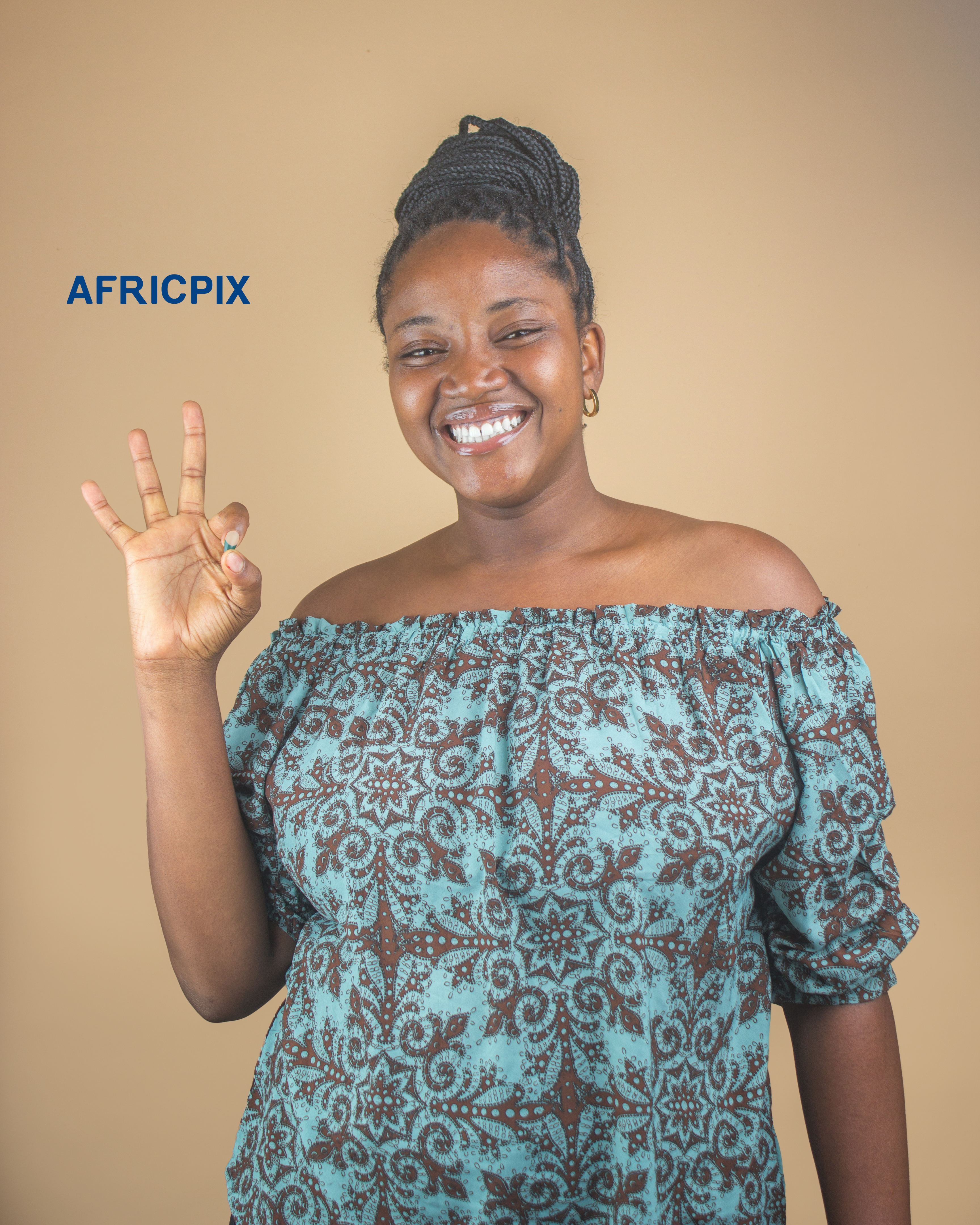 African woman wearing Ankara, giving the ok sign with her finger.jpg