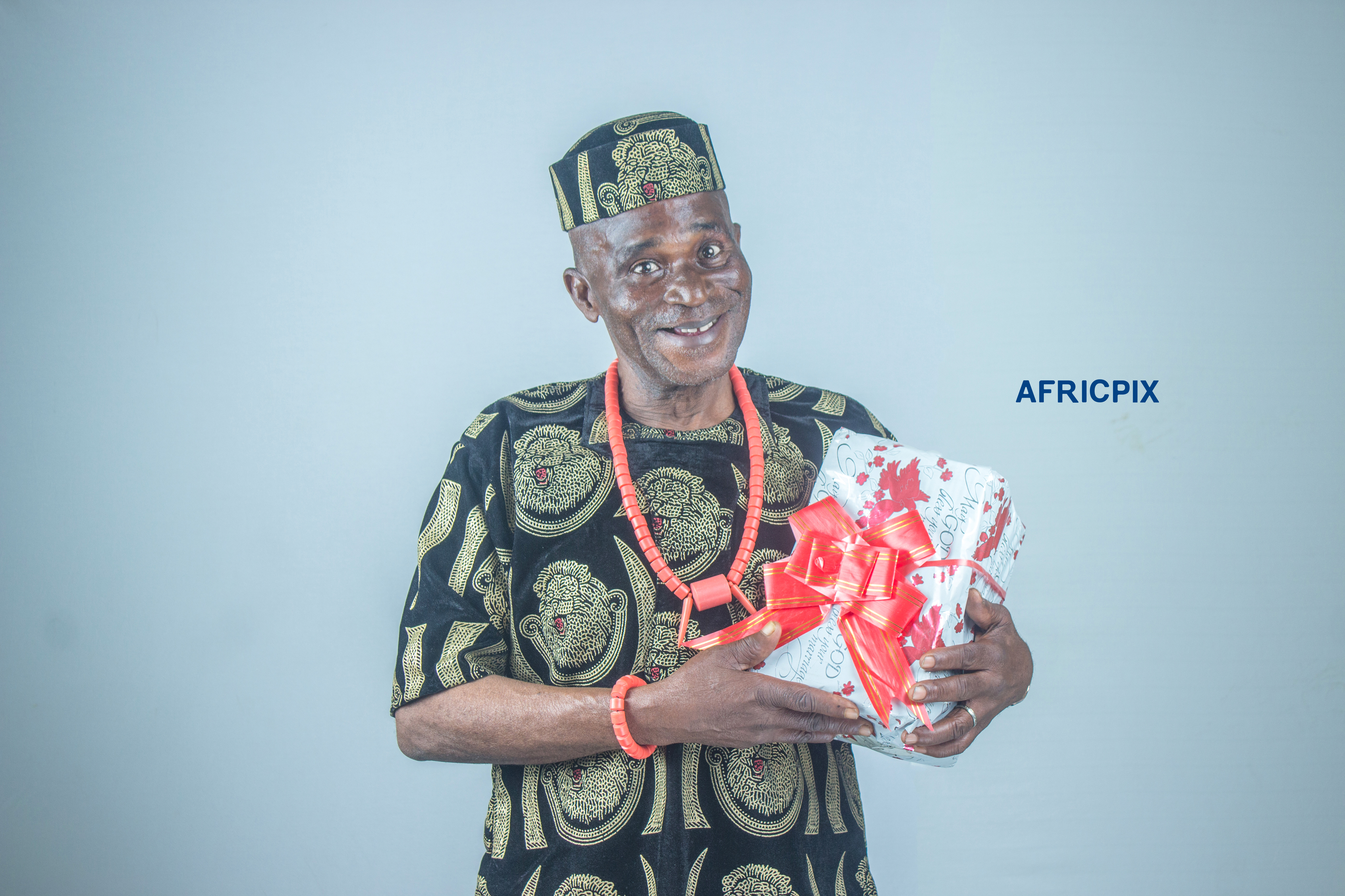 A joyful African Nigerian Igbo holding a gift he is looking happy.jpg