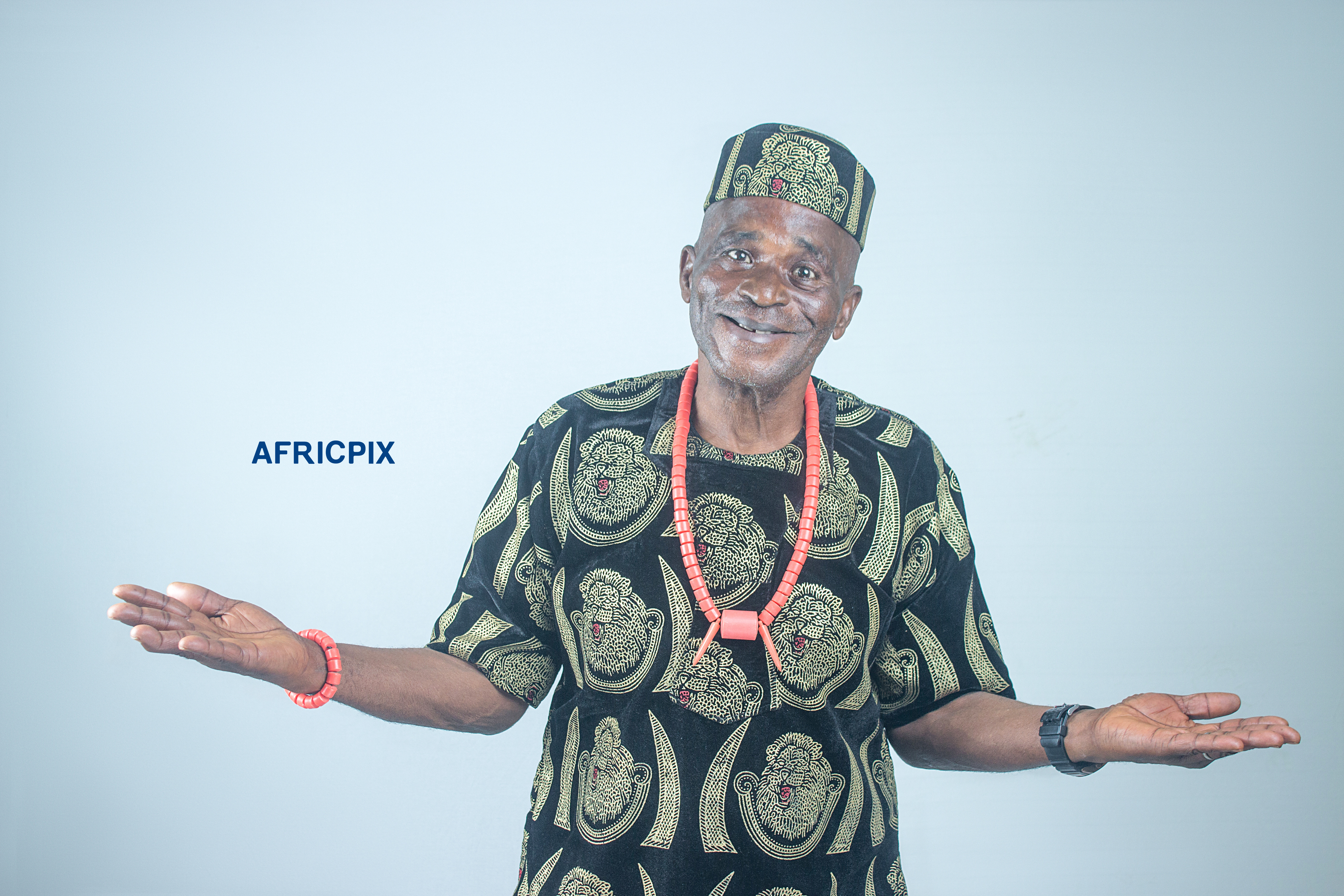 A joyful African Nigerian Igbo happy joyfull point to an object