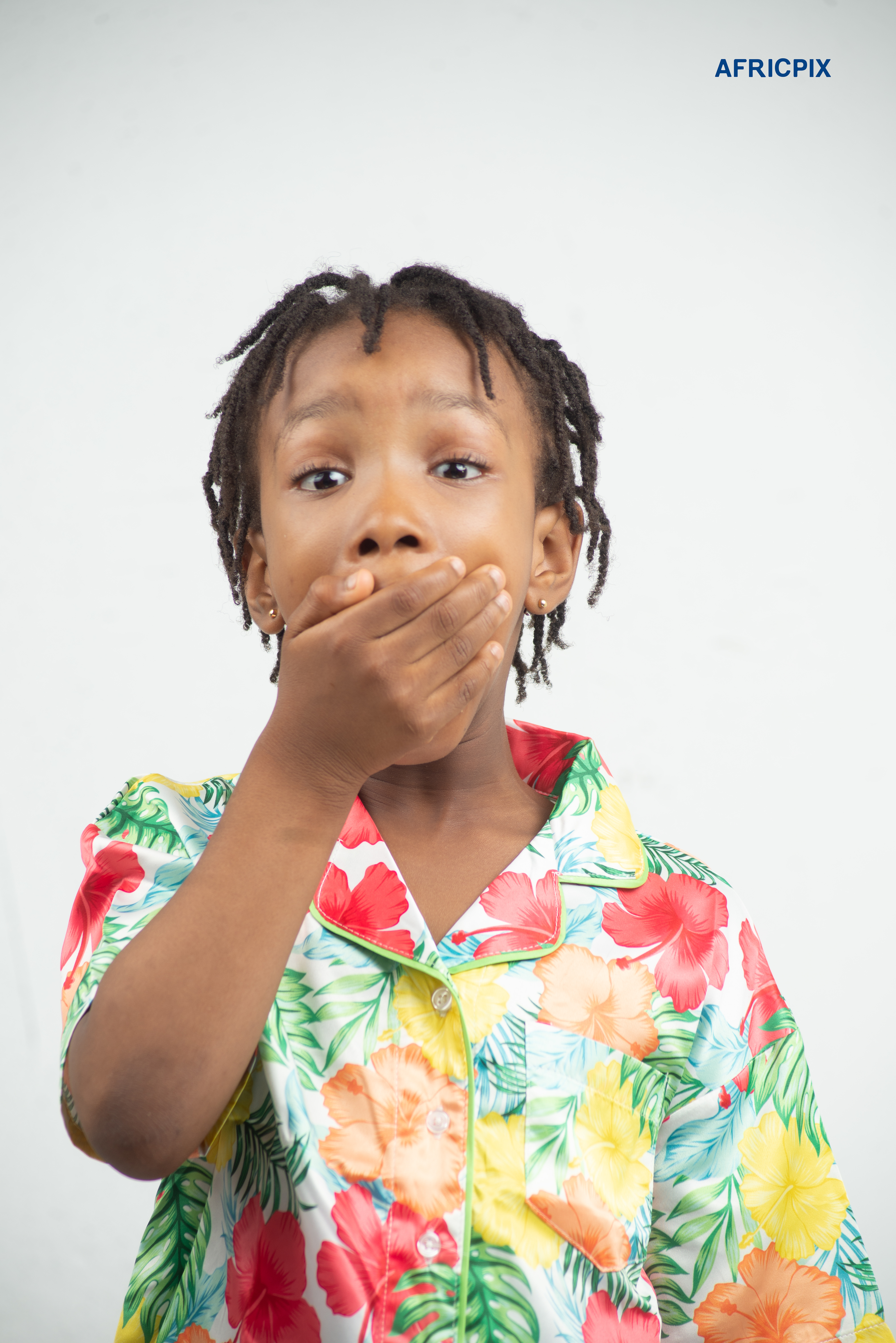 Nigeria Child Boy Stand Fold Arm With Tongue